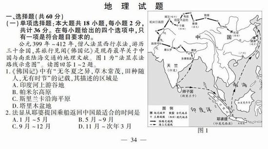 2019年江苏省高考模拟试题及答案:地理