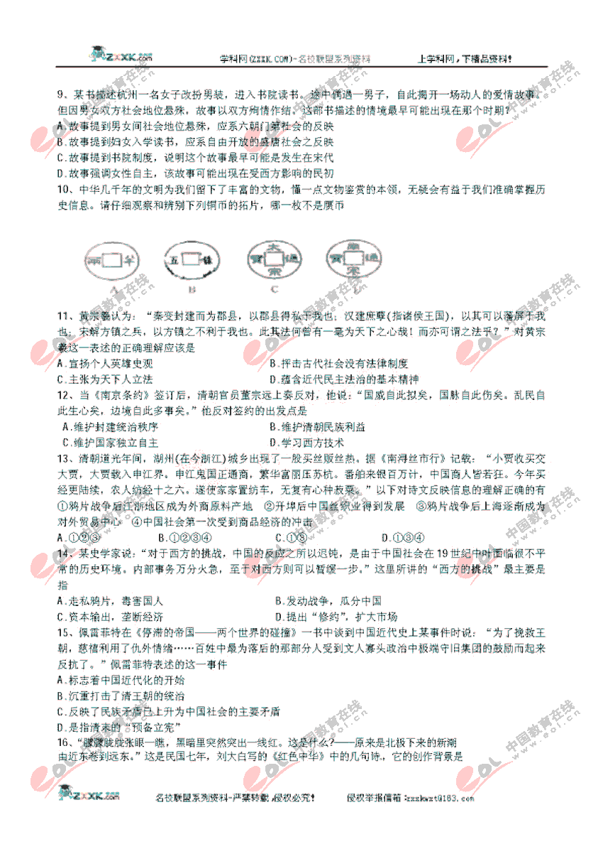 山西大学附中2011届高三第四次月考历史试题