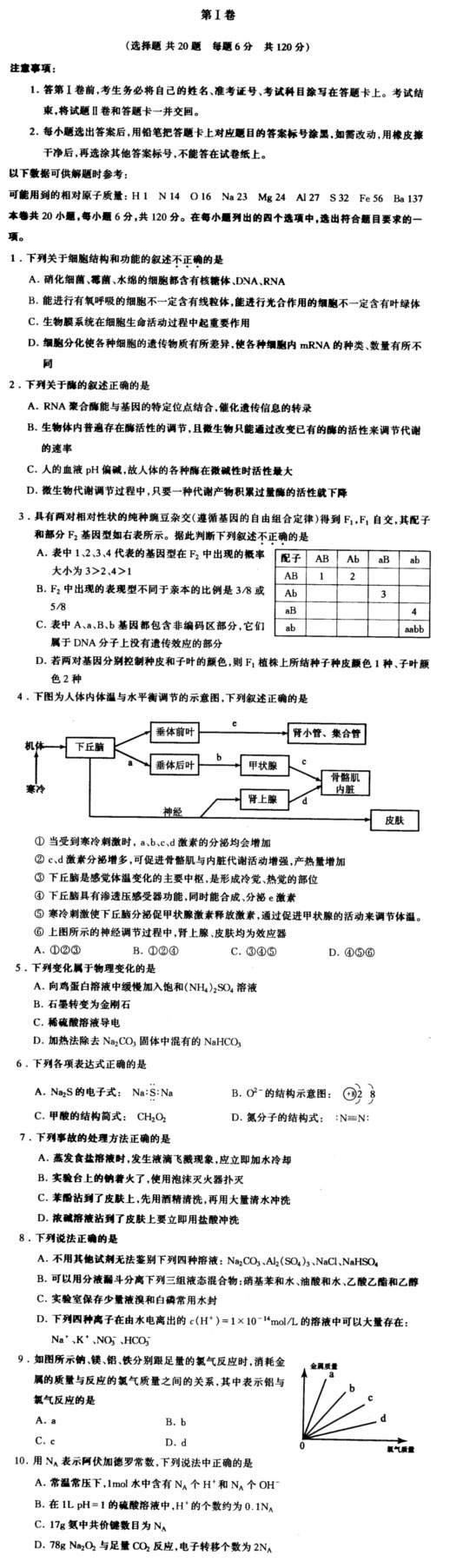 崇文区06年第二学期高三统一练习(二)理综