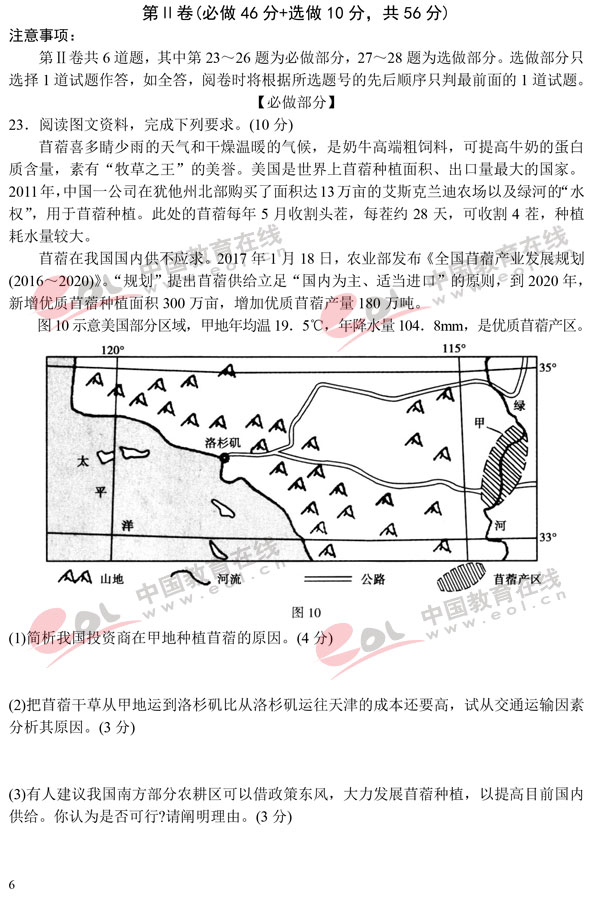 2018高考模拟试题及答案:地理