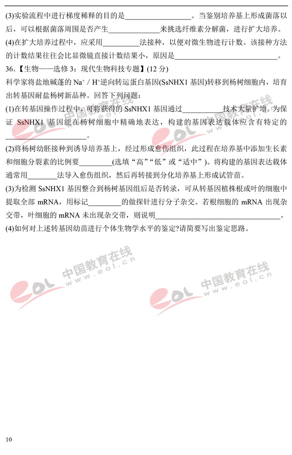 2018高考模拟试题及答案:生物
