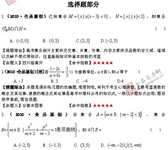 2010年高考最有可能考的50题大纲版(数学)