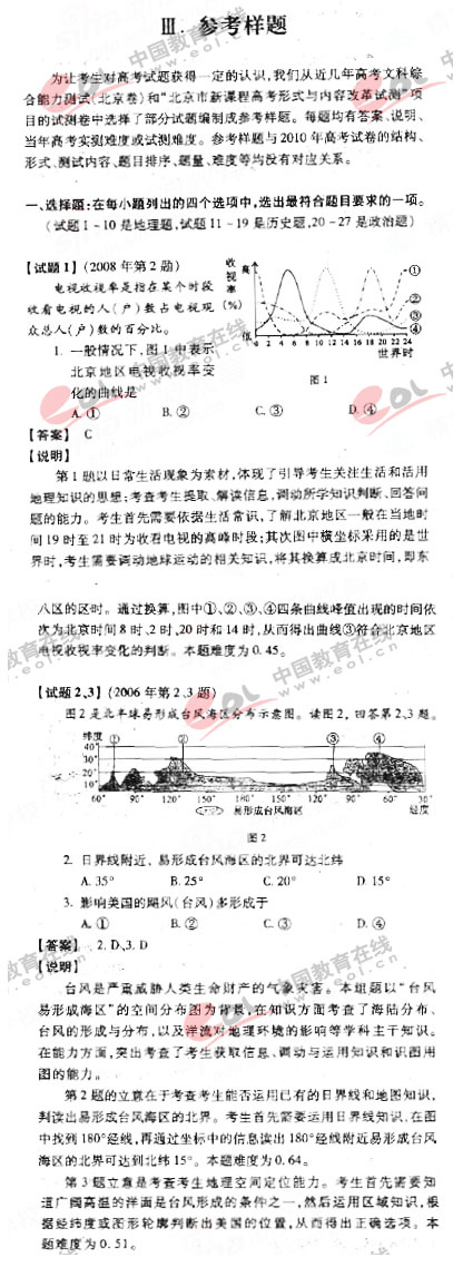 北京2010年高考样卷:文科综合参考样题