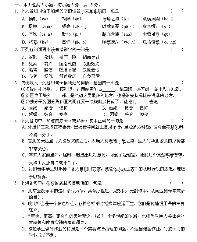 2006年海淀区高三年级第一学期期末练习语文试卷