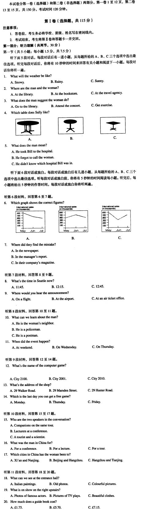 2006年朝阳区高三第二次统一考试英语试题