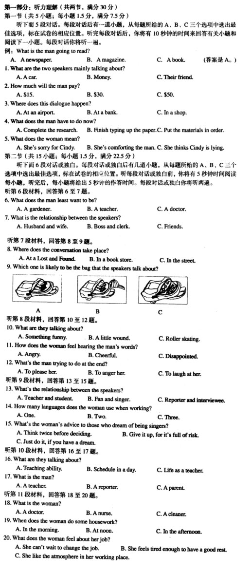 崇文区06年第二学期高三统一练习(二)英语试题