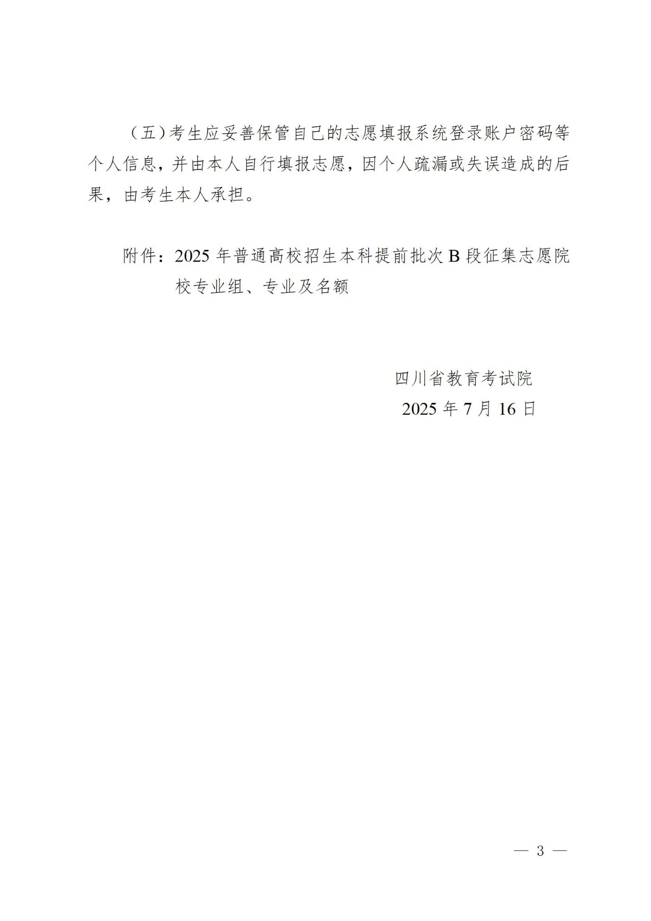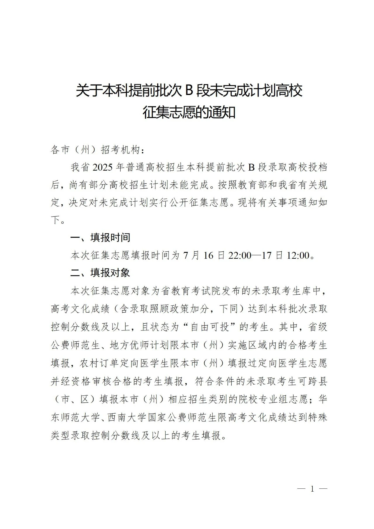 四川关于本科提前批次B段未完成计划高校征集志愿的通知