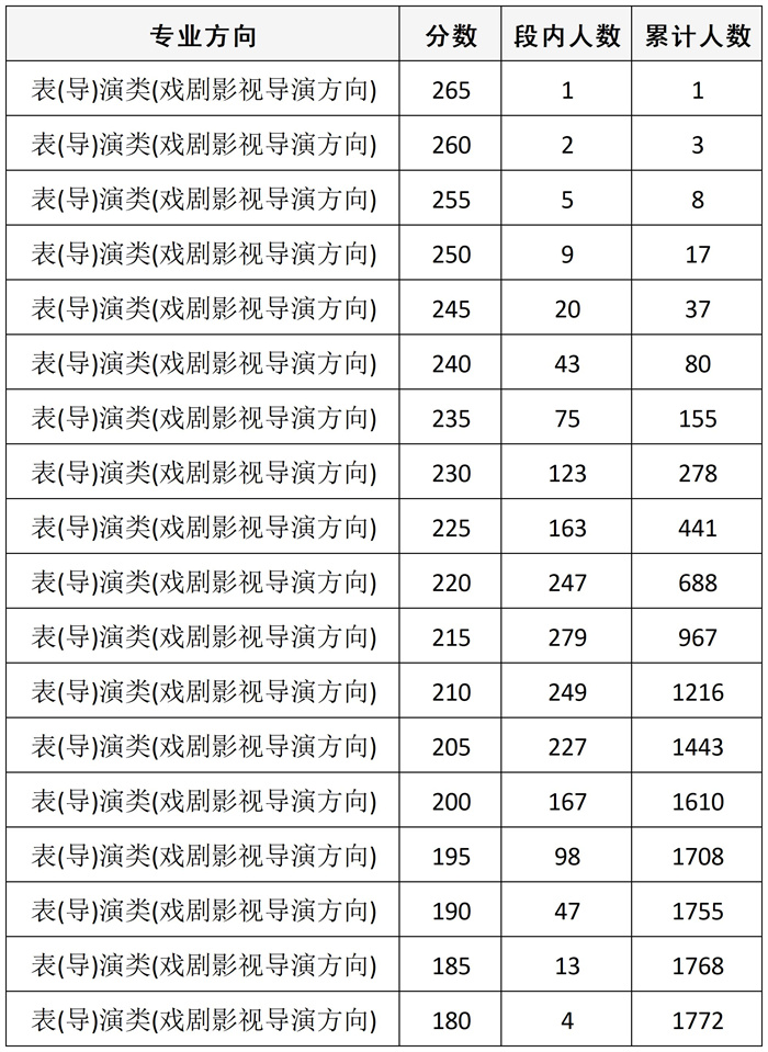 四川省2026年普通高校招生艺术类专业统考合格线已经省招考委划定。为便于考生和组织专业校考的招生学校了解专业统考成绩分布情况,现公布专业统考成绩达到合格线的考生专业总分五分段统计表,供考生和招生学校查阅。