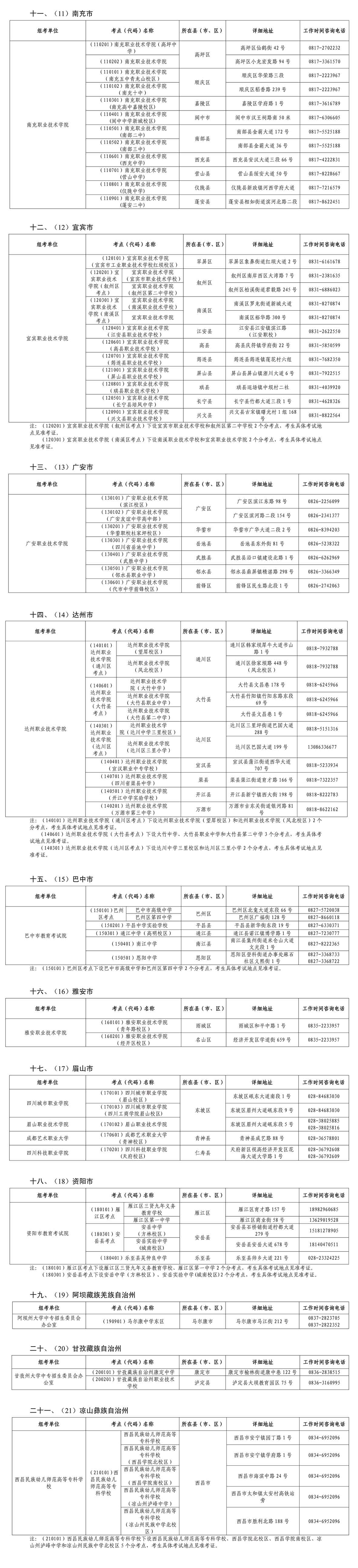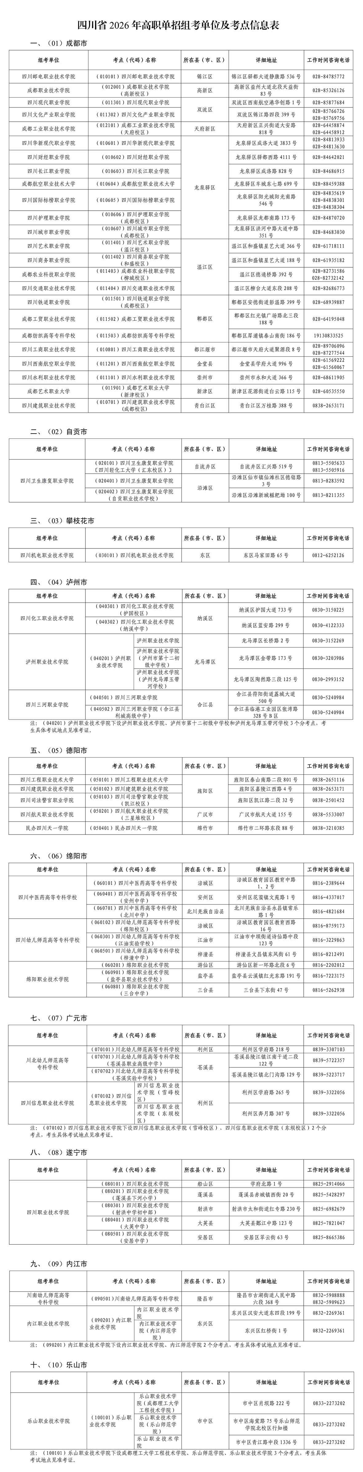 附件:四川省2026年高职单招组考单位及考点信息表