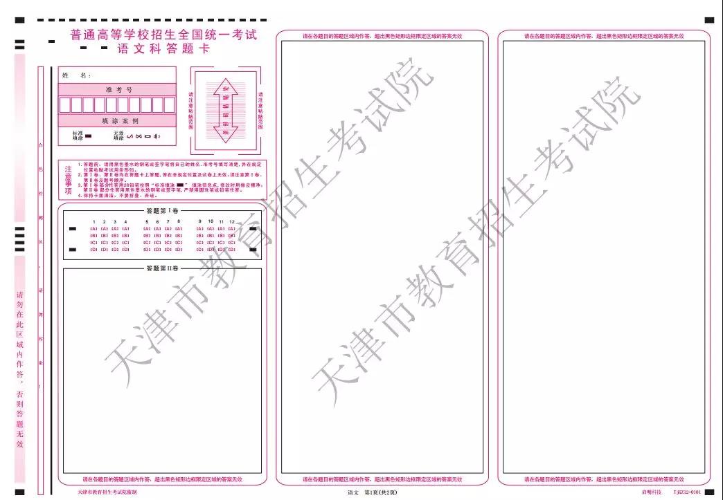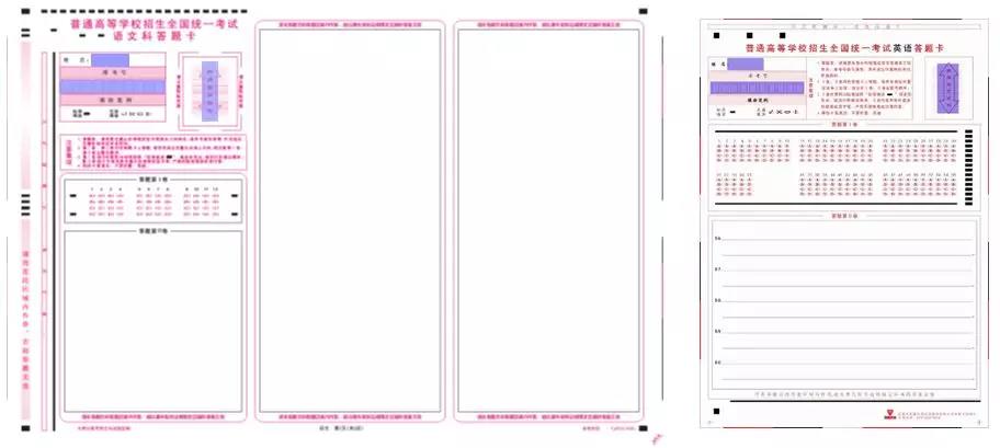 高考语文、数学、综合、英语科目均实行网上评卷。考试时的答题卡会印有相应的题号、答题区域和提示,请考生作答时务必注意。各科答题卡具体样式附后。