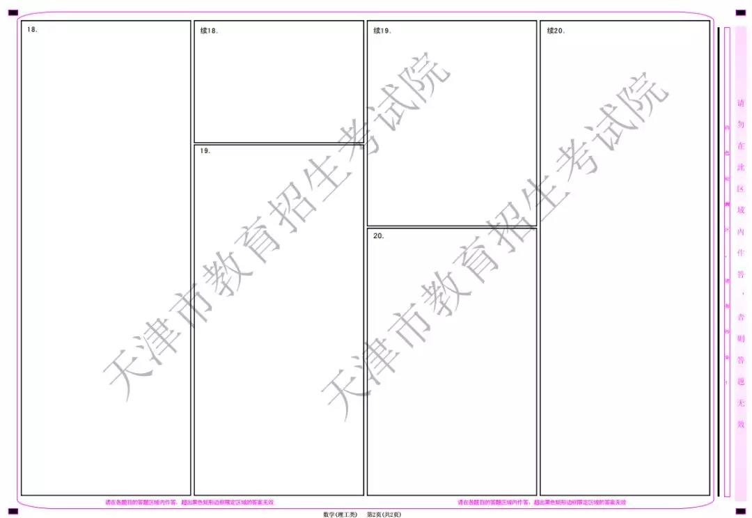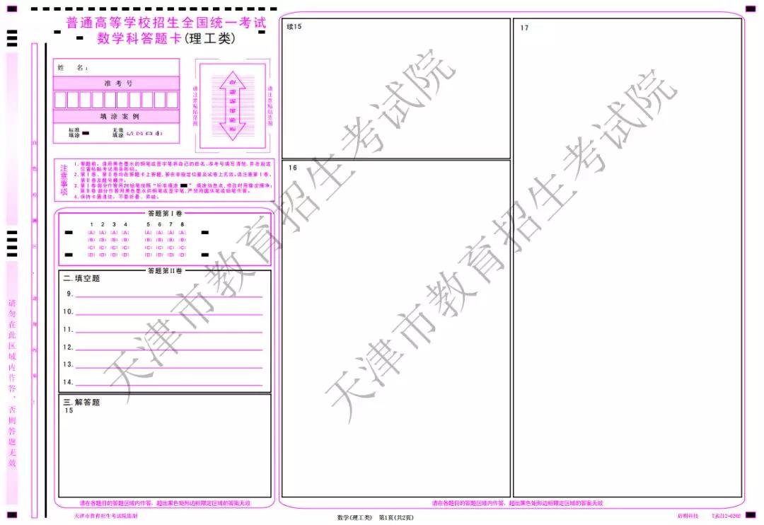 (2)数学科目答题卡样式