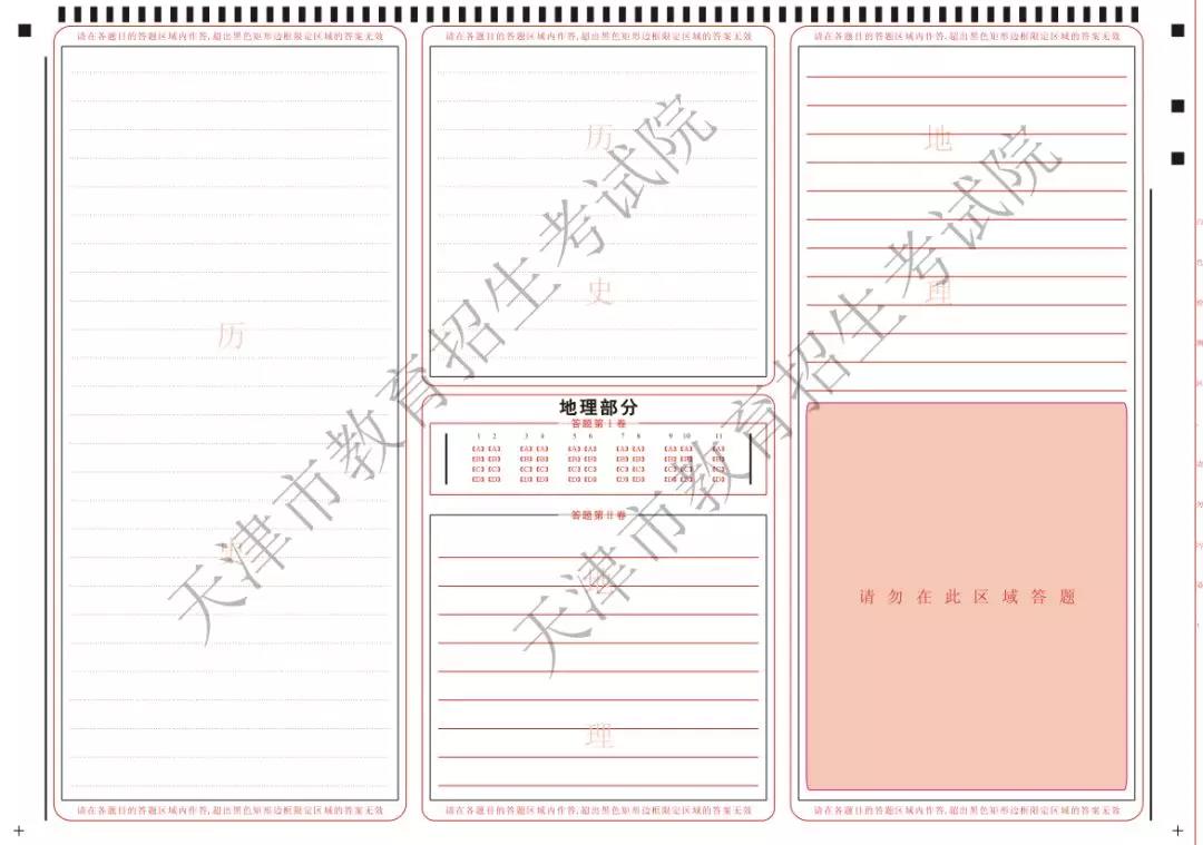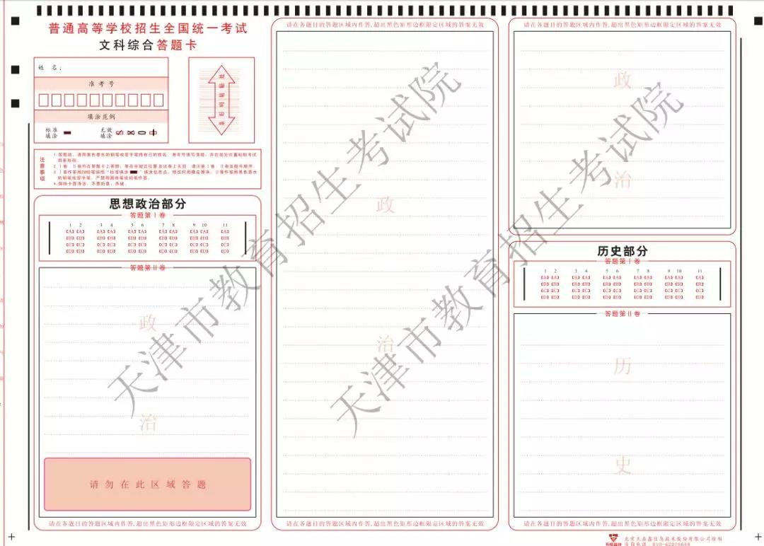 (3)文科综合科目答题卡样式