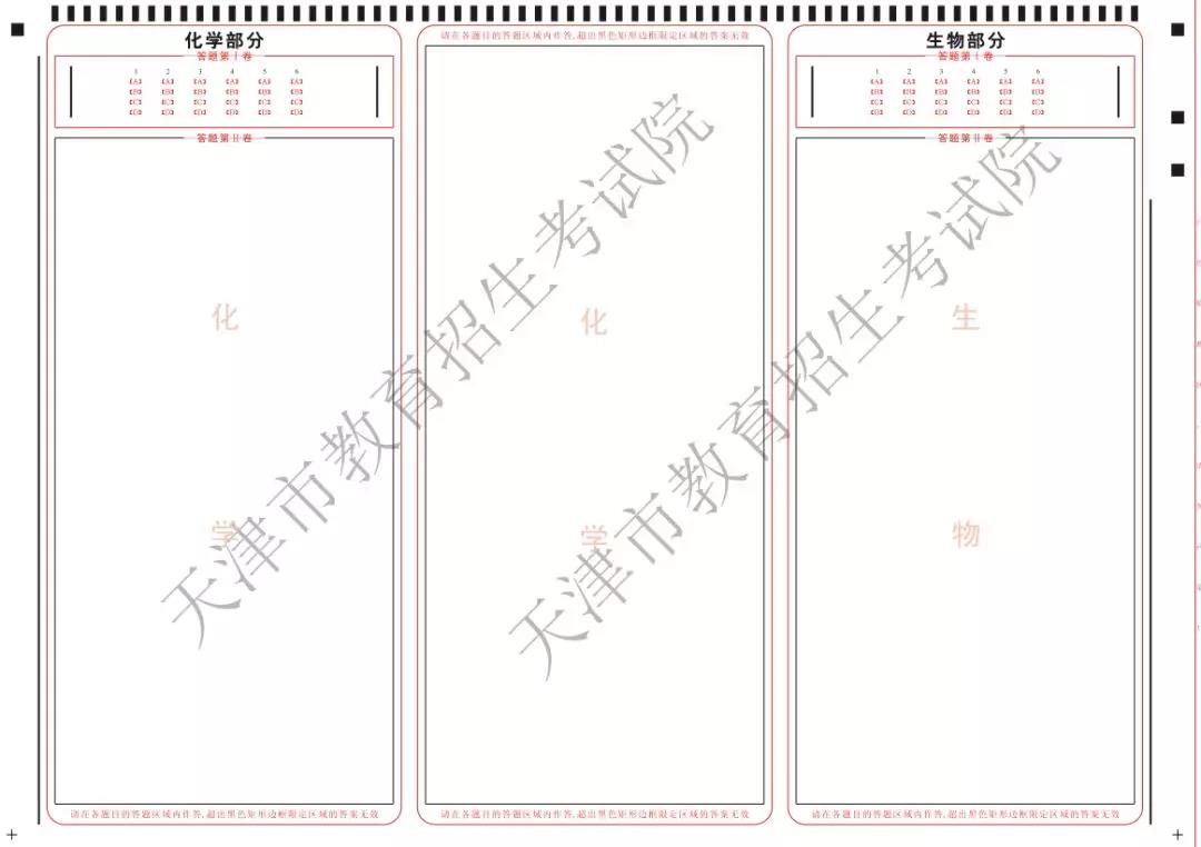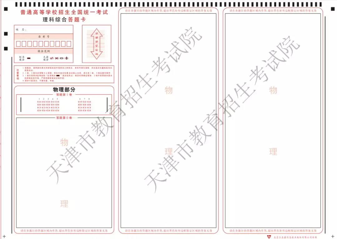 (4)理科综合科目答题卡样式