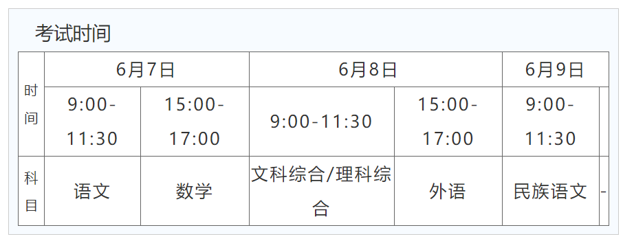 “普通类”和“单列类”招生计划考试科目为:语文、数学(文史类/理工类)、外语、文科综合/理科综合。除外语科目,均使用国家通用语言试卷并使用国家通用语言文字答卷。其中,外语科目分英语、俄语、日语、法语、德语、西班牙语等六个语种,由考生任选一种,外语科目不组织口试。外语科目笔试部分120分,听力部分30分。外语听力部分为必考内容,其成绩不计入考生高考外语科目成绩总分,按考生听力考试实际得分计入听力单项成绩,提供给高校,录取时是否做参考由高校决定。笔试部分的120分调整为150分,调整换算办法:按考生笔试部分的卷面成绩乘以1.25,换算为外语科目成绩。