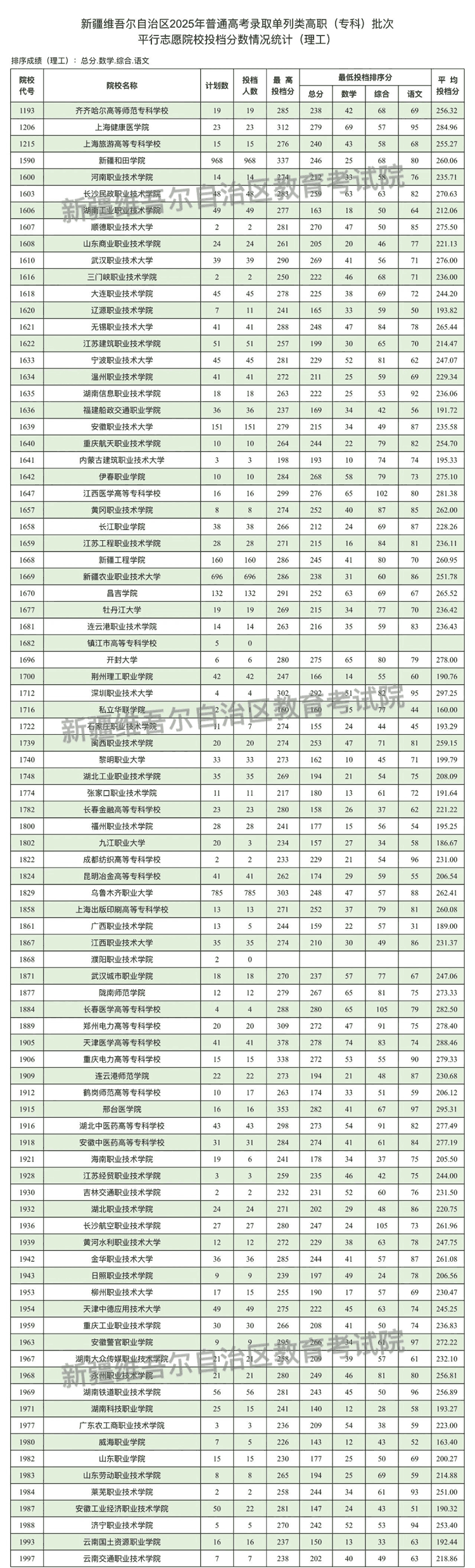 新疆维吾尔自治区2025年普通高校招生单列类高职(专科)批次投档情况已发布,具体内容如下: