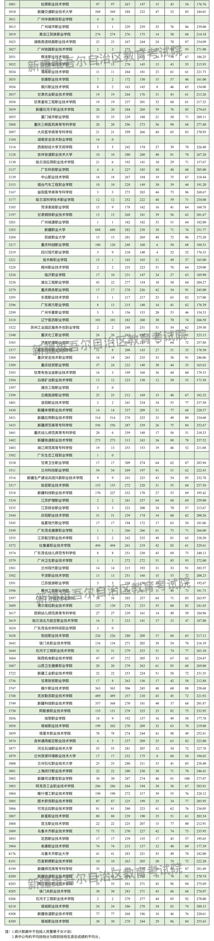 新疆维吾尔自治区2025年普通高校招生单列类高职(专科)批次投档情况