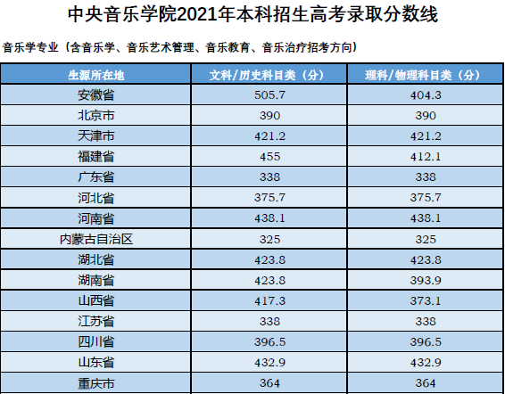 2022高考报考指南:八大音乐学院2021年录取分数线盘点