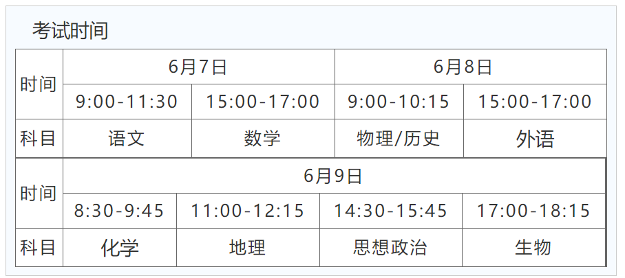 2025年起,云南省普通高校招生考试实行“3+1+2”模式,包括3门普通高等学校招生全国统一考试(以下简称全国统考)科目和3门普通高中学业水平选择性考试(以下简称选择性考试)科目,其中全国统考科目为语文、数学、外语(英语、日语、俄语、德语、法语、西班牙语任选一门)3门,不再分文理科,外语科目考试含听力和笔试两个部分。选择性考试科目由考生从物理和历史2门首选科目中任选1门,从思想政治、地理、化学、生物学4门再选科目中任选2门。