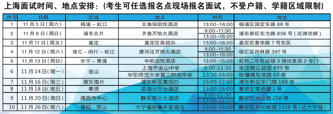 请报名同学于2022年11月5日-11月26日前往就近面试点报名(详见面试安排)。