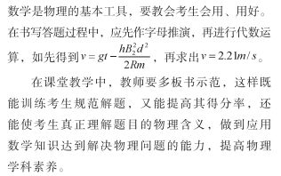 教学建议:(1)夯实基础。建议在新课教学时重视双基,教学进度可以放慢一点,这为考生以后更快、更有效掌握物理知识打下基础。(2)灵活掌握运用公式,提高规范化解题的水平。本题所涉及的物理概念、规律、定律、定理等恰巧书上都有基本公式,但在本题的题干中给出了对应物理量的字母,而考生却无视题干,只记公式,直接套用书上的公式。所以,在日常教学中应提醒考生认真审题,圈注题中已知与未知的物理量,选用合适的字母,在讲评试卷时也要关注正确使用题干物理量的符号,讲细、讲全、讲得失分之要点。应让考生理解一些结论公式的生成过程,懂得每个物理过程的逻辑关系,而不是机械记忆结论。(3)加强应用数学知识解决物理问题的能力。
