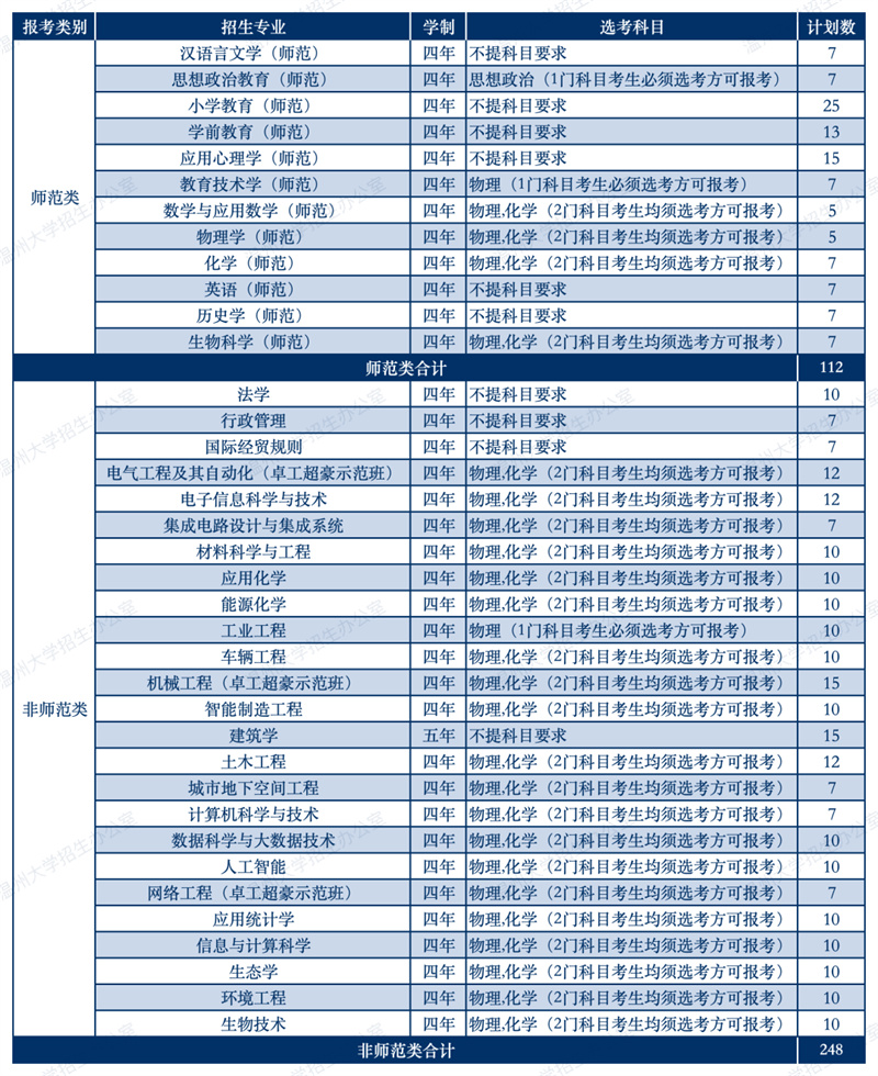2025年温州大学“三位一体”综合评价招生总计划数为360名,分两种报考类别,其中师范类112名,非师范类248名。具体如下: