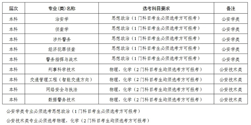 (三)考生报考全省统招专业数据警务技术的,须填写第一专业志愿,否则无效。报考分市招生专业的,须根据选考科目要求先选择专业大类(公安学类或公安技术类),再选择具体专业,选考科目均符合要求的可兼报两大类及具体专业。