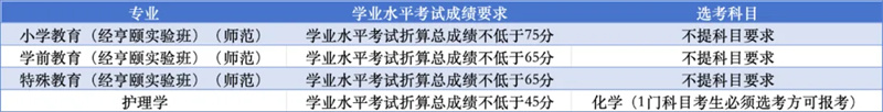 1.获得我校综合评价招生入选资格的考生均需参加浙江省2025年普通类高考。考生所填报的专业(类)志愿须满足该专业(类)选考科目要求。报考小学教育(经亨颐实验班)(师范)、学前教育(经亨颐实验班)(师范)、特殊教育(经亨颐实验班)(师范)、护理学专业普通类考生,在普通类提前录取。考生须第一志愿填报我校,否则无效。“三位一体”综合评价招生的考生填报的专业志愿须与初次网上报名所填报的专业一致。未被我校录取的考生,进入后续志愿的投档程序。