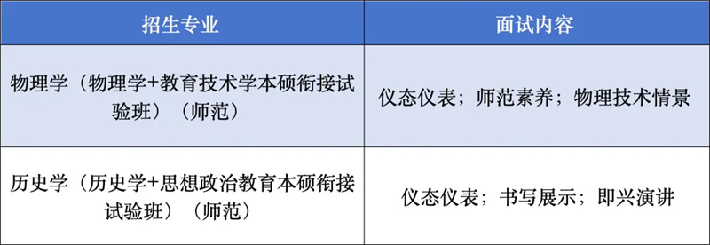 5.考生类别:“物理学(物理学+教育技术学本硕衔接试验班)(师范)”、“历史学(历史学+思想政治教育本硕衔接试验班)(师范)”招收普通类考生。