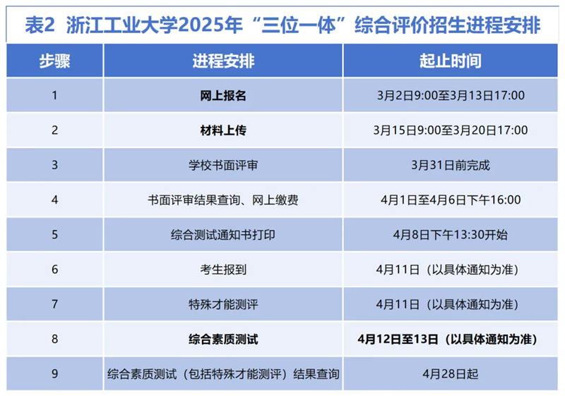 第二条 本章程适用于2025年浙江工业大学“三位一体”综合评价招生工作。