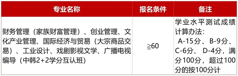 2.普通高中学业水平考试成绩均为合格(含)以上(以报名截止日期前已取得的成绩为准),且符合报考我校专业相应学业水平测试成绩最低要求(详见下表);