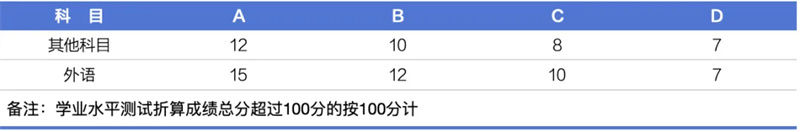综合成绩计算:综合成绩由学业水平测试成绩、综合测试成绩、高考成绩三部分组成。综合成绩按“学业水平测试成绩(满分为100分)×15%+综合测试成绩(满分为100分)×25%+高考成绩÷7.5×60%”计算形成。以上各环节成绩均按四舍五入原则取小数点后3位,再进行相应计算。