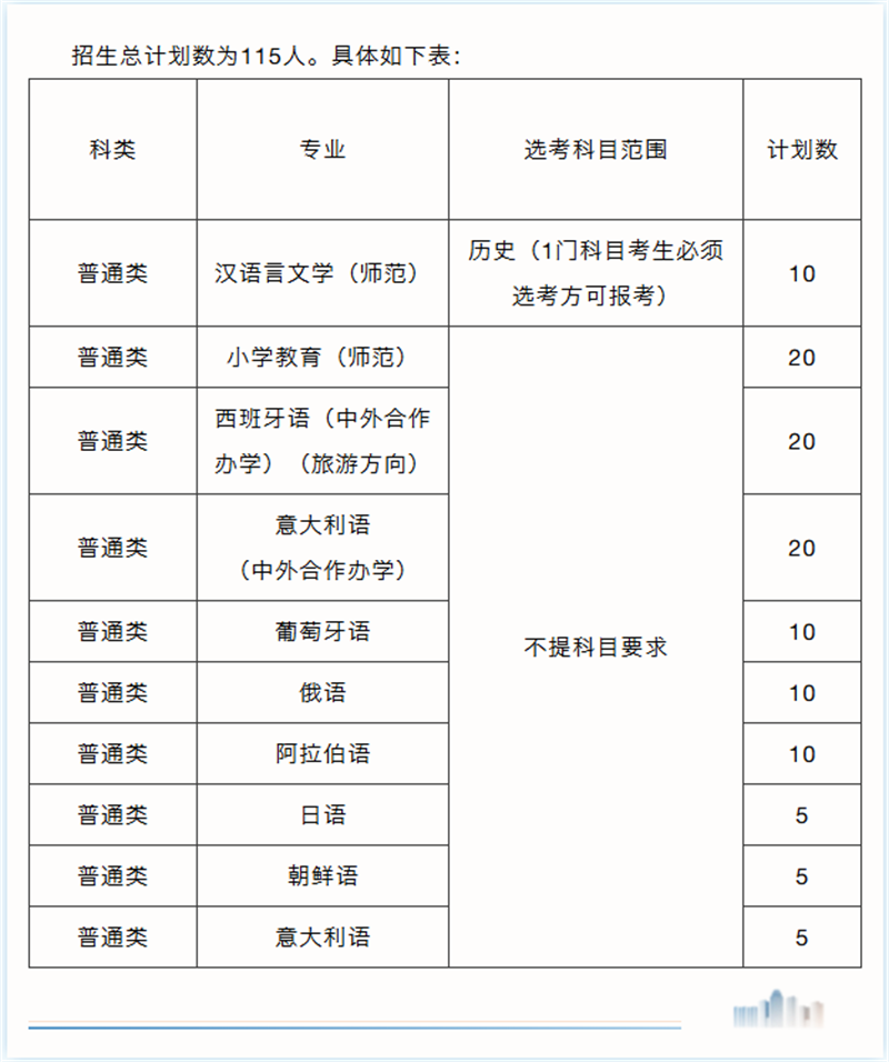 招生总计划数为115人。具体如下表:
