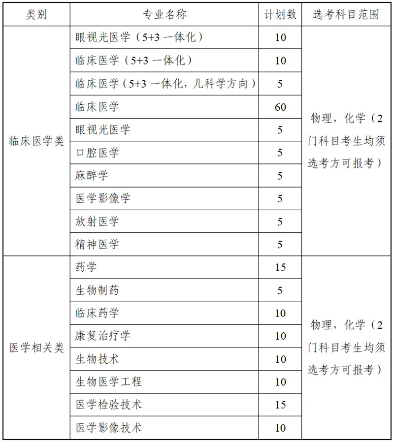 表2.2025年温州医科大学