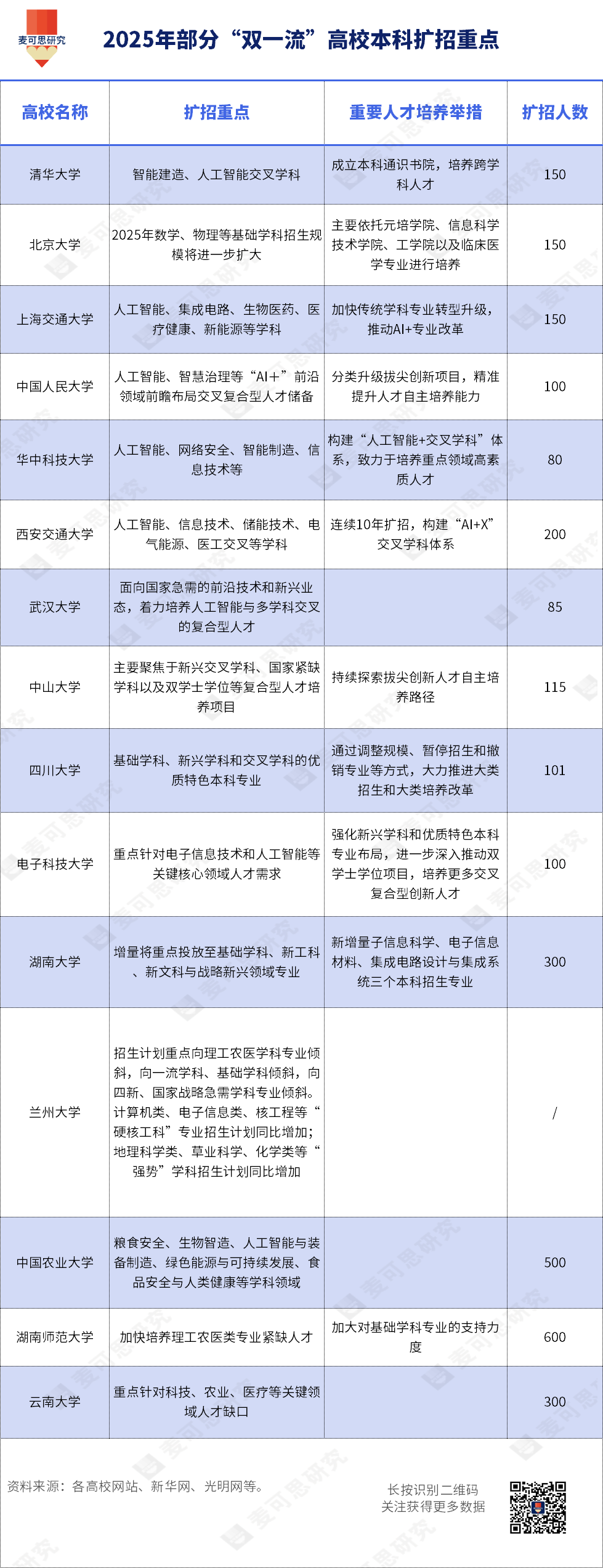 ◆ 清华大学、北京大学、上海交通大学均宣布增加150人。