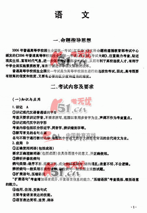 2006年高考江苏卷考试说明(语文学科)