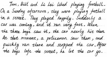 一篇优秀的书面表达首先就是一件艺术品,书写清楚,字母大小匀称,单词间距适当,没有明显修改痕迹。请欣赏下面范文干净、整齐的卷面效果: