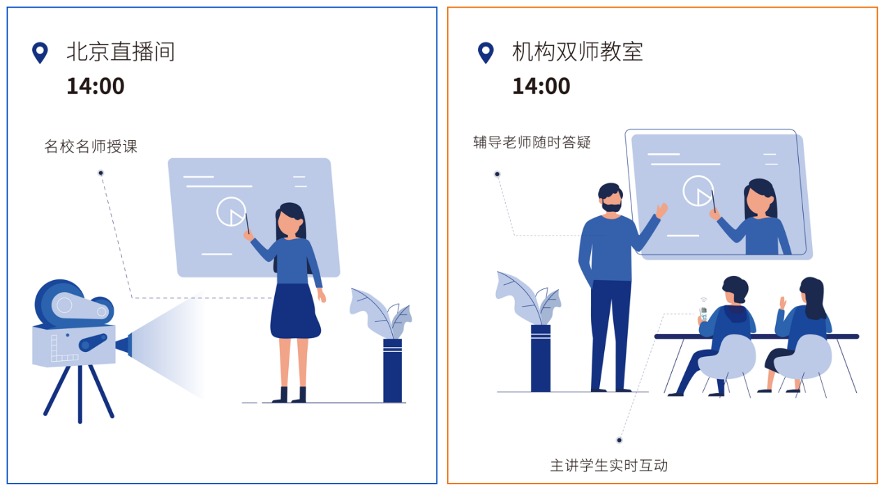 从爱英语,到爱数学,没有优秀老师是陈校长开发新课程时遇到的第一只“拦路虎”。寻找老师的过程中,陈校长接触到了一种“批量输出一线名师”的新模式——双师课堂。这种“线上主讲、线下辅导”相结合的授课方式使优秀教师资源不再受地域的限制,对于佛山的教培机构来说,无疑是一剂良药。初步判断可行性后,埋在陈校长心底的扩科种子“萌芽了”。