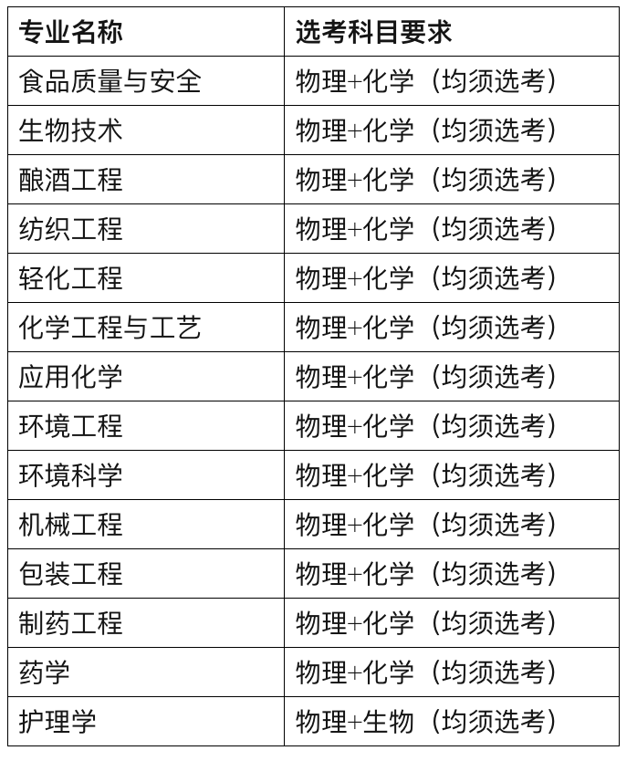 招生专业范围及高考综合改革省份选考科目要求见下表。西藏招收理科考生,新疆招收普通类理科考生。